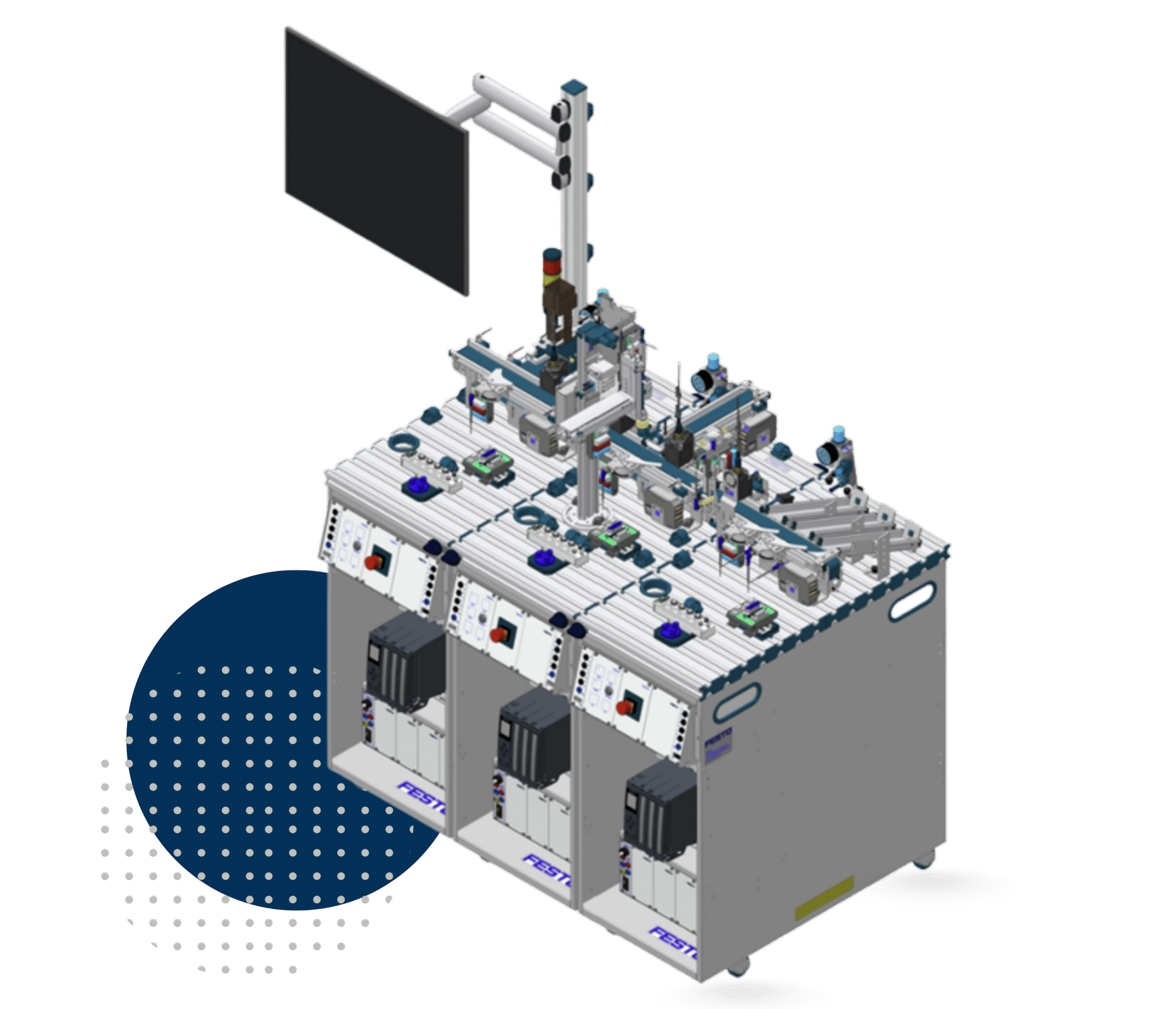 This training module covers actuator technology, sensor integration, and PLC programming. It provides practical experience with material handling, sorting, and automated inspections, integrating pneumatic and hydraulic systems for real-world applications in automation and manufacturing environments.