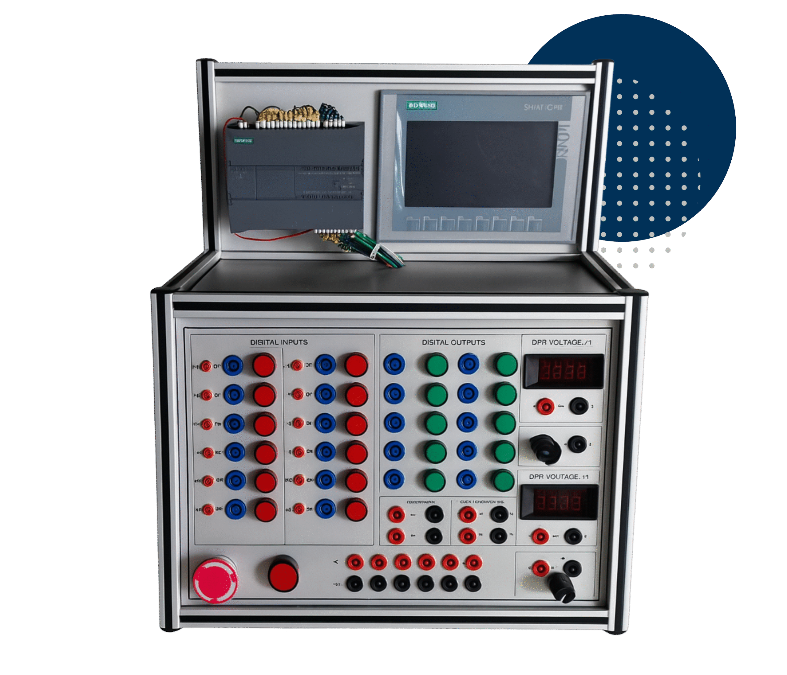 The PLC Training Module provides hands-on learning in PLC programming, ladder logic design, and industrial automation systems. This module covers the basics of PLC control, HMI design, sensor integration, and actuator control, preparing learners for real-world applications in industrial environments.